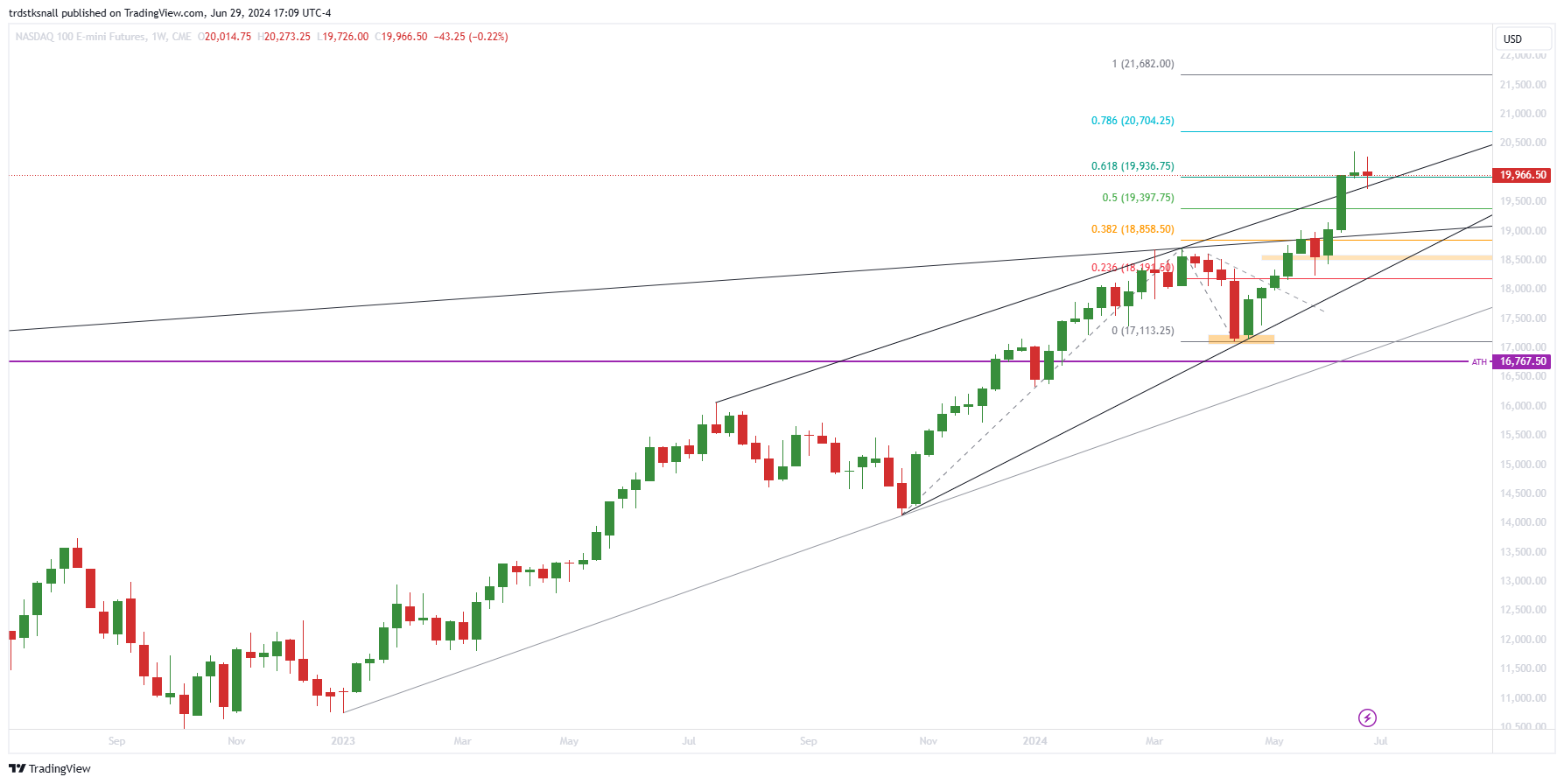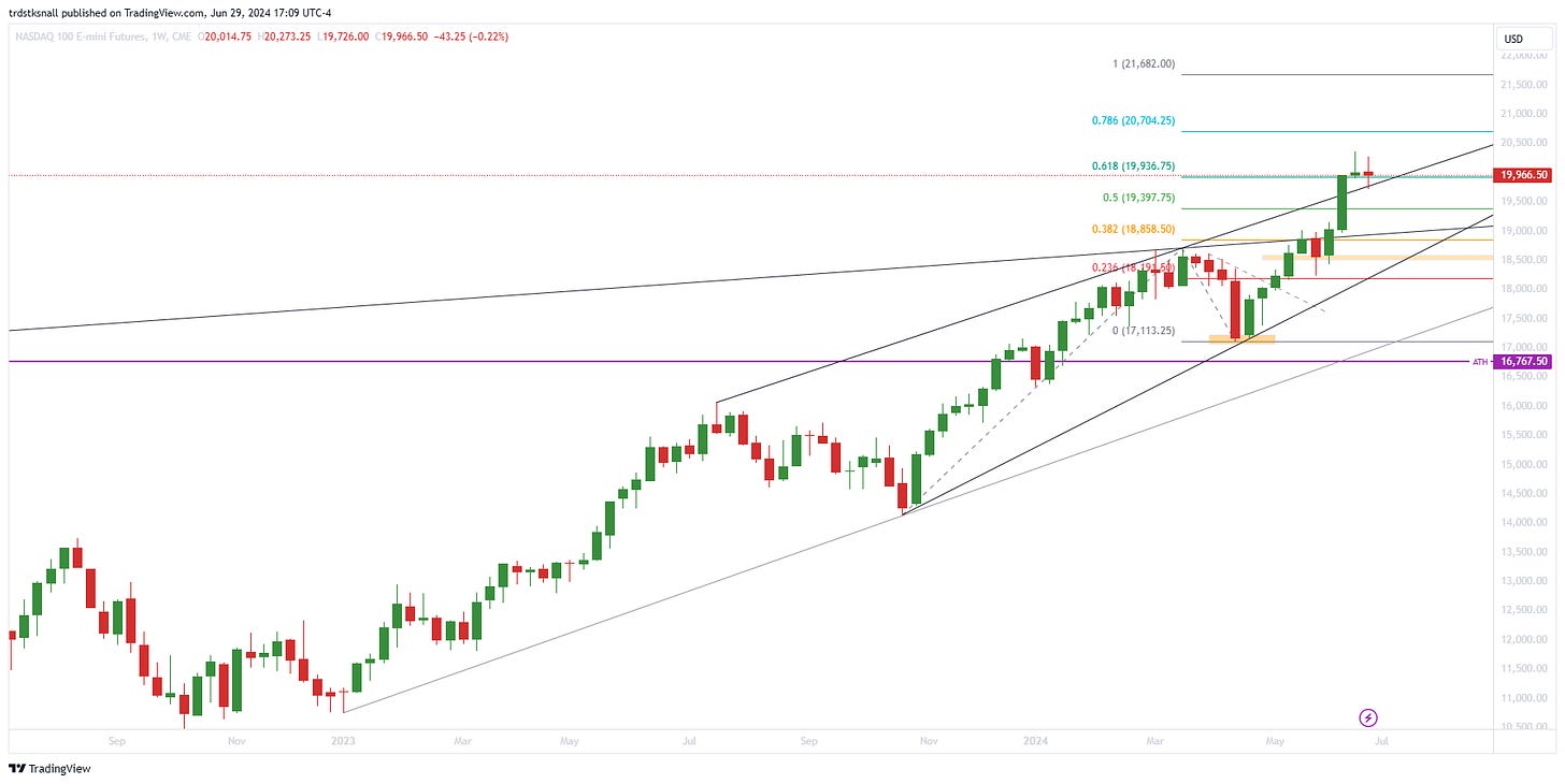 On June 20th, #NQ hit my first yearly target of 20320 (20371 high). These targets were shared in the January 2024 newsletter. As always, with the level, this would invalidate the play.