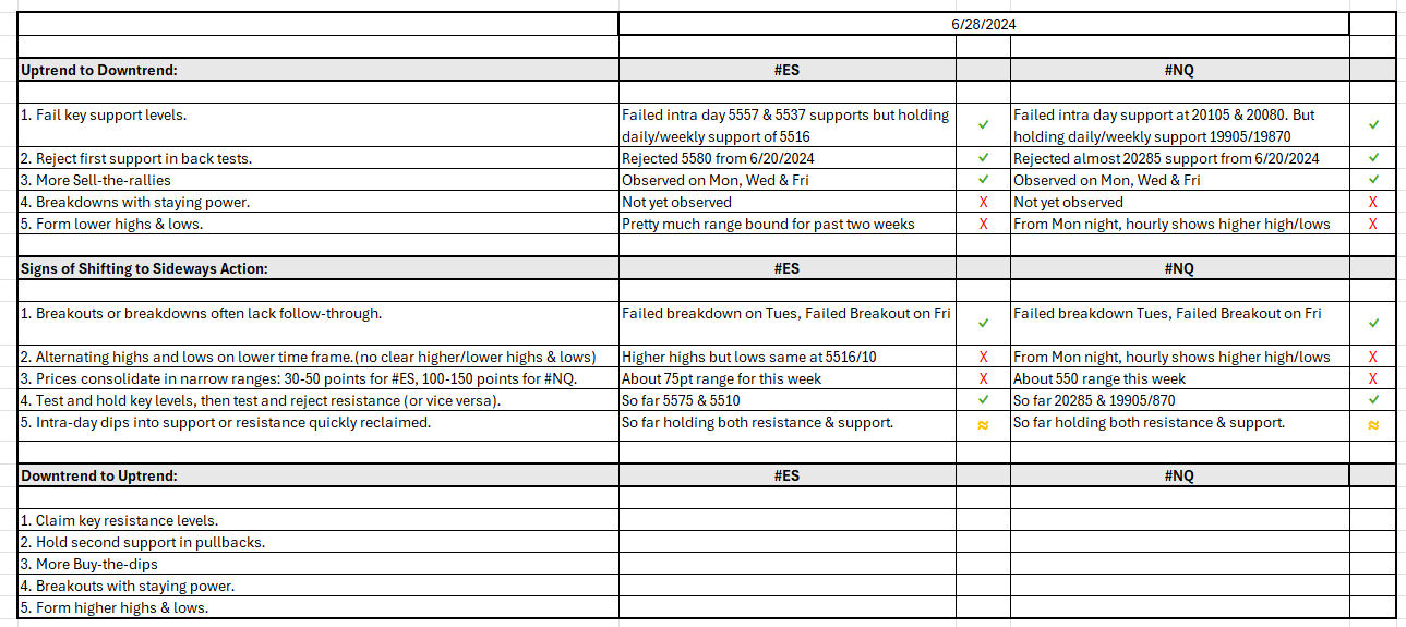 Here's my cheat sheet on trend changes and what I observed for #ES & #NQ.